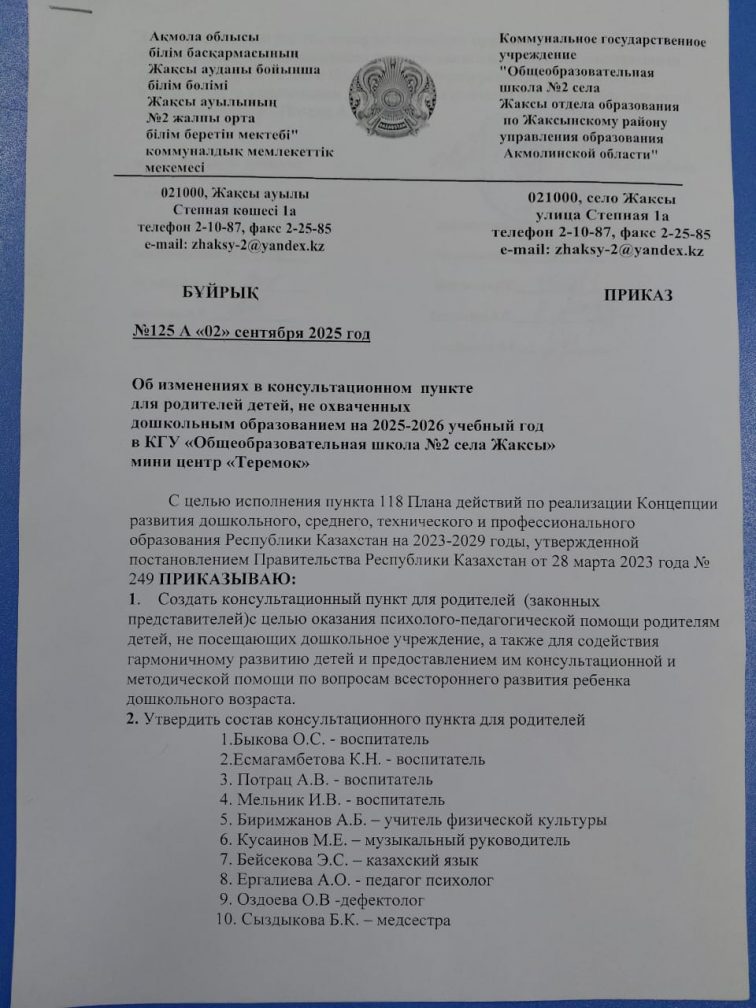 Жақсы ауданы бойынша білім бөлімі Жақсы ауылының №2